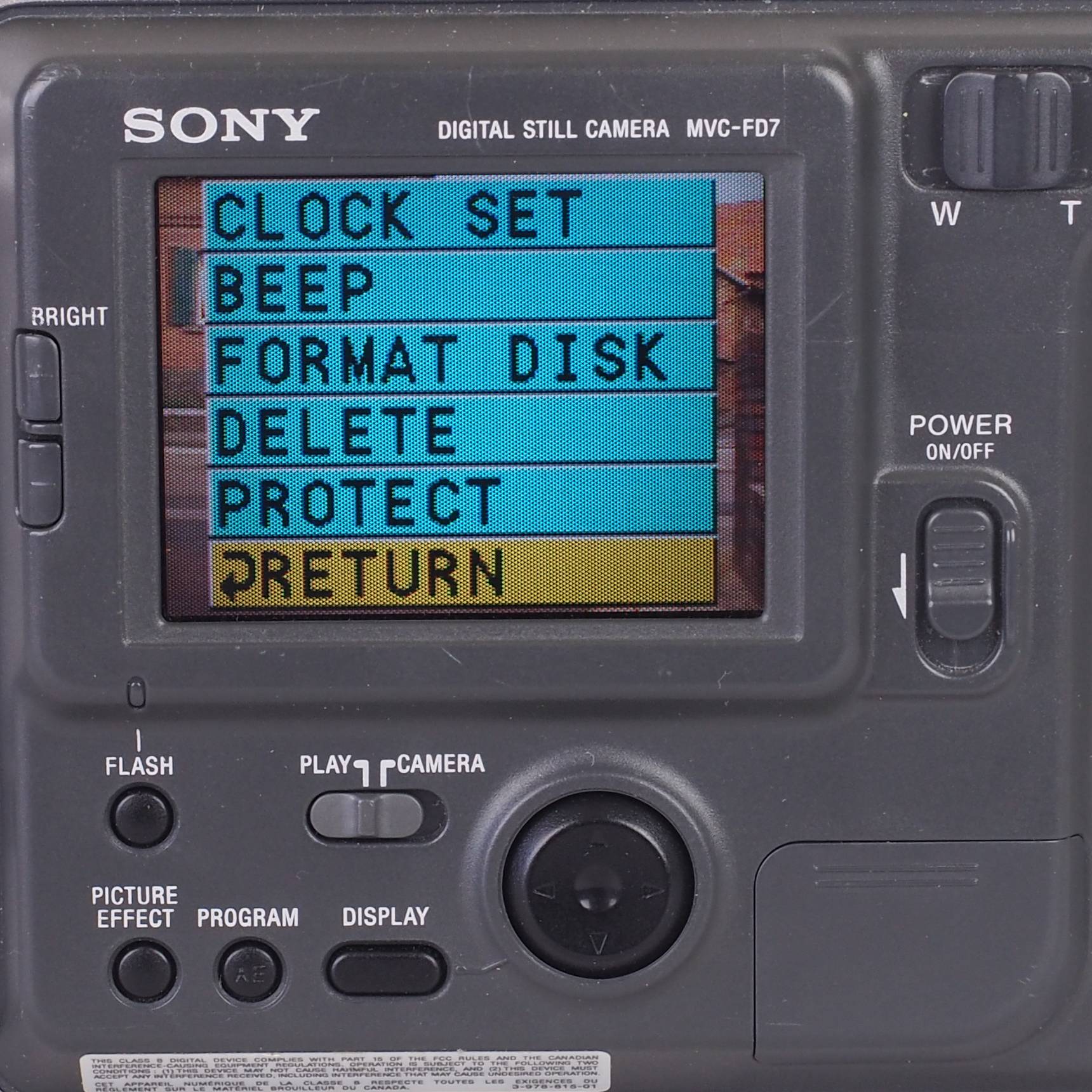 | Filmtransport | mittels Schiebestange (ca. 2.5cm Hub) auf der linken Seite, die beim Auslösen ausfährt und beim Reinschieben den Film von der Filmpatrone in die leere Aufnahmenpatrone schiebt. Keine Rückspulung notwendig. Zählwerk (vorwärts von 1-24), manuelle Rückstellung mit durch Rückwand verborgenem Zahrad. |